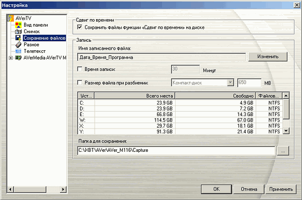 Отсутствие настройки параметров TimeShift в случае с MCE 116 Plus не так критично, разрешение 720×576 и постоянным видеобитрейт 6000 Кбит/с в сочетании с использованием аппаратного кодера обеспечивают комфортные ощущения от режима отложенного просмотра.