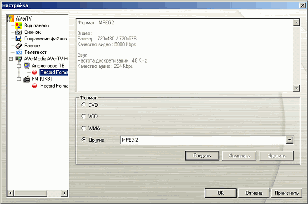 - Запись видео в формате MPEG1/2 при помощи аппаратного кодировщика