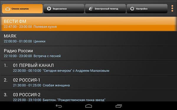 Список эфирных каналов при тестировании