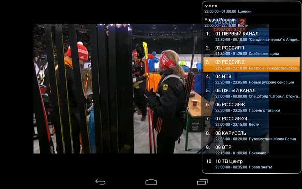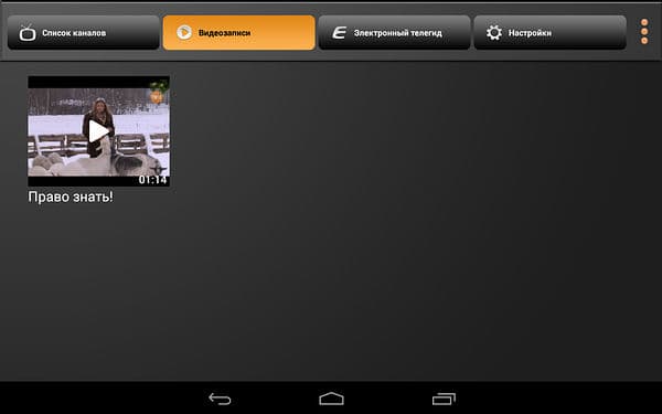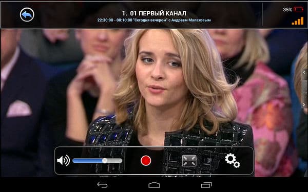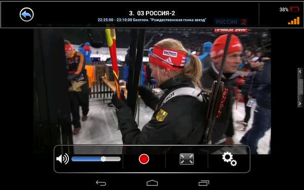 Доступное здесь управление также лаконично, можно настроить громкость, включить запись (осуществляется в sdcard/AVerTV/rec в формате Transport Stream), изменить соотношение сторон (только 16:9 и 4:3) и вызвать список каналов в правой части экрана (каналы также переключаются жестами вправо и влево).