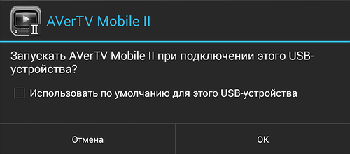 Если мобильное устройство поддерживается программой, пользователь увидит окно с запросом на автоматический запуск AVerTV Mobile II при подключении TV-тюнера.