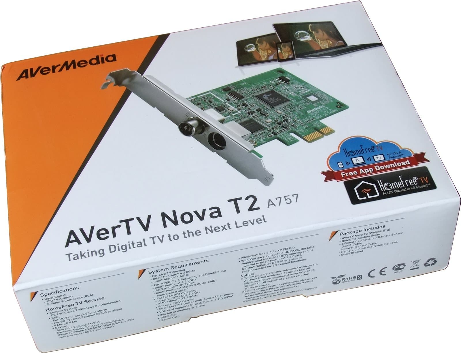 Тем не менее, запуск вышеперечисленных процессов состоялся, и тайваньская компания AVerMedia Technologies Inc., предложившая в качестве первой модели для отечественного рынка гибридный AVerTV Hybrid Volar T2 (H831) с интерфейсом USB, не так давно представила полностью цифровой TV-тюнер с поддержкой DVB-T2 уже для PCI Express, получивший лаконичное название AVerTV Nova T2 и внутренний индекс A757.