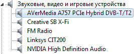 После установки в разделе Звуковые, видео и игровые устройства появляется устройство AVerMedia H831 Hybrid DVB-T/T2.
