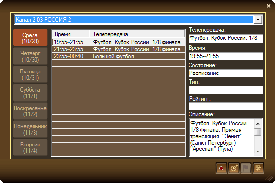 Реализована работа с электронной программой передач при условии наличия таковой в цифровом канале.