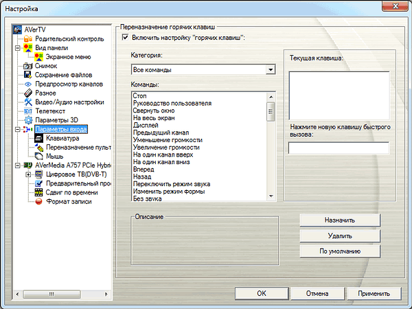Отсутствие настройки пульта ДУ в AVerTV 3D объясняется просто, AVerTV Nova T2 комплектуется MCE-совместимым пультом, лишенным дополнительных кнопок.