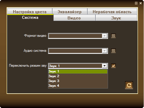 Изменение яркости, контрастности, оттенока, насыщенности и резкости в цифровом режиме не поддерживается, однако доступно «Усиление цвета» («Video Color Enhancement» в оригинале) позволяющее дополнительно увеличивать насыщенность (кроме автоматической работы возможно ручная настройка, которой, впрочем, может помешать еще одна давняя ошибка в локализации, ставшая причиной непонятного «Свернуть» вместо «Минимум»). В программе реализованы демонстрационные режимы с обработкой половины изображения и с разделением окна. По умолчанию опция активирована, пользователям, не являющимся сторонниками чрезмерной насыщенности, не помешает это учесть.