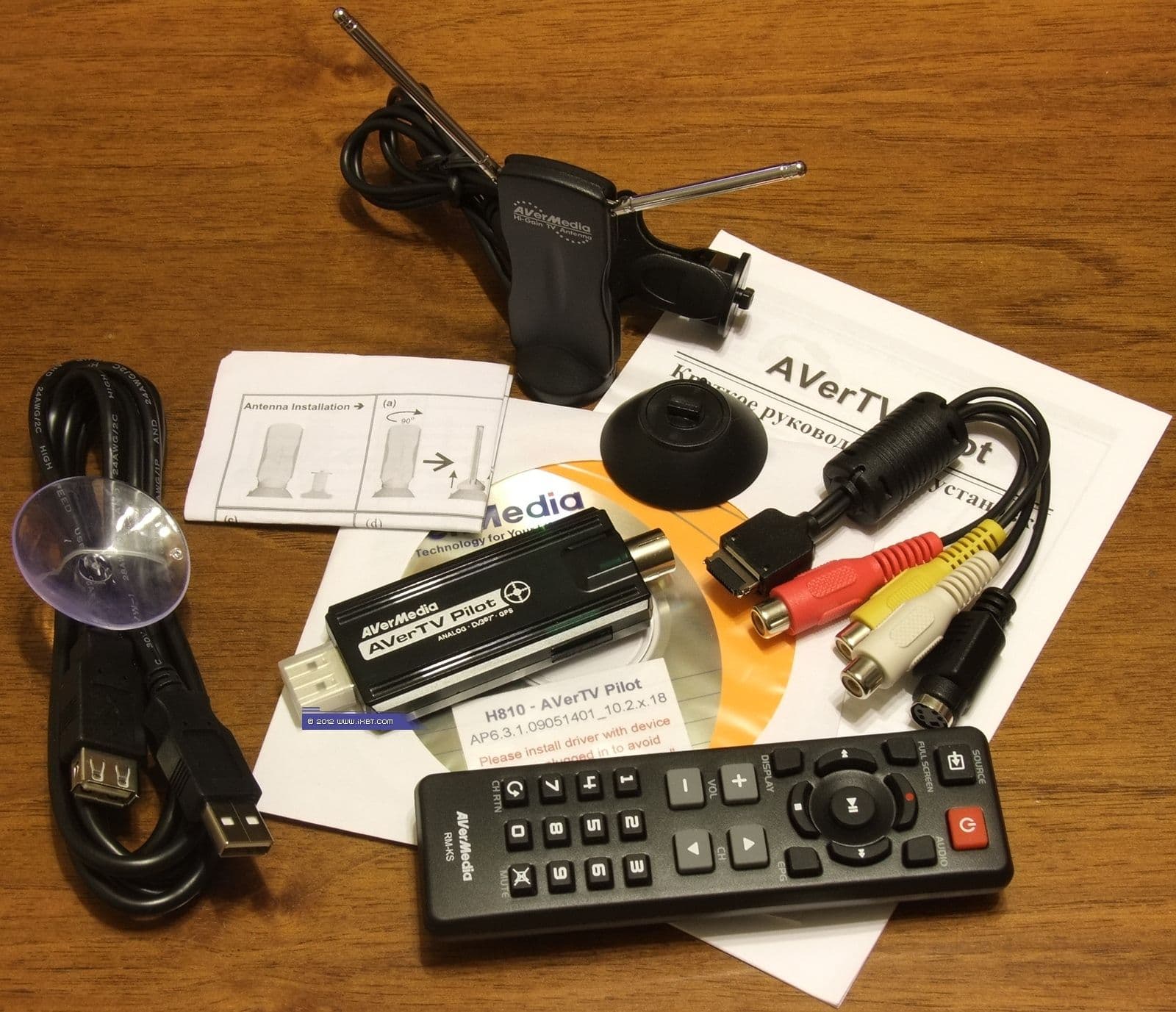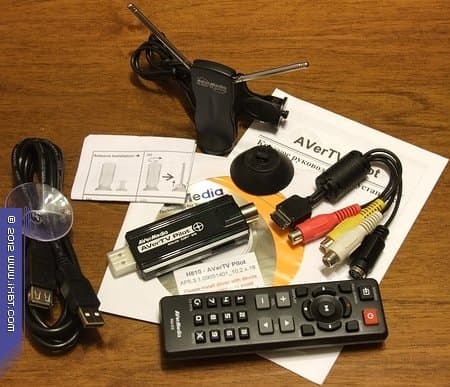 Судя по официальному сайту производителя, тюнер, получивший романтичное название AVerTV Pilot (внутренний индекс H810), в настоящее время поставляется в коробке чёрного цвета, коробка же нашего экземпляра оформлена в привычной оранжево-белой цветовой гамме.