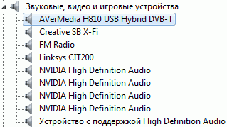 После установки в разделе Звуковые, видео и игровые устройства появляется устройство AVerMedia H810 USB Hybrid DVB-T, а в разделе Устройства HID (Human Interface Devices) устройство AVerMedia H810 USB Custom IR Reciever. GPS-модуль обнаруживается в разделе Порты (COM и LPT) в виде u-blox 5 GPS and GALILEO Receiver.