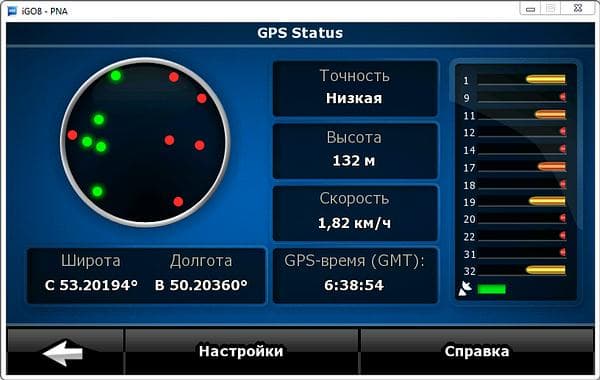 Работа в режиме GPS-приёмника