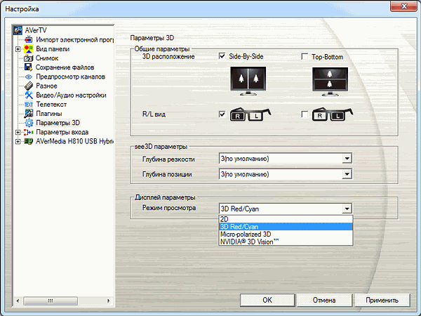 Индекс «3D», появившийся в названии AVerTV, означает поддержку стереоизображения для затворных очков NVIDIA 3D Vision, поляризационных и анаглифических очков.