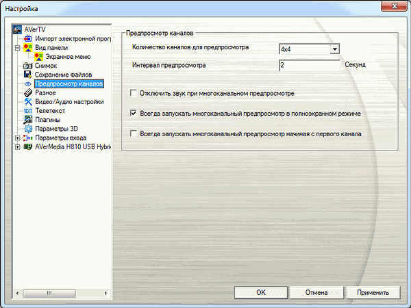В настройках AVerQuick можно разрешить автоматический запуск AVerTV при подключении тюнера.