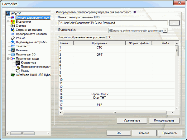 Наиболее заметным внешне отличием этой версии программы от предыдущих является перенос настроек программы передач EPG (Electronic Program Guide) на первую строчку. Напомним, что наряду с внутренним форматом (.avr) поддерживается популярный JTV (.ndx и .pdt).
