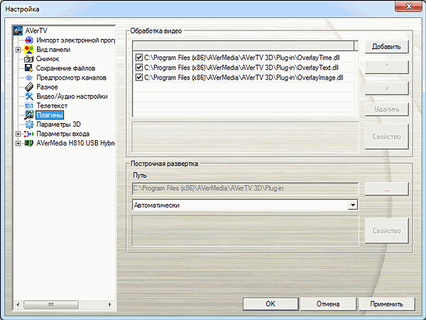 Раздел «Плагины», добавляющий поддержку дополнительных программных модулей, впервые появился в четвёртой подверсии AVerTV 6.