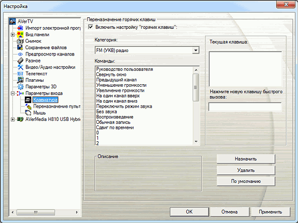 - настройка «горячих» клавиш;