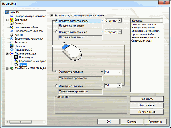 и кнопок/колеса стандартной трёхкнопочной мыши. Поддерживаются комбинации «кнопка мыши + кнопка-модификатор».