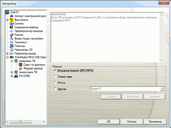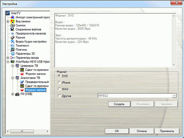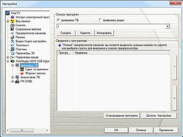 Ручная настройка таких параметров, как VPID (Video Program Identification) и APID (Audio Program Identification), традиционно невозможна. Впрочем, не менее традиционно необходимости в последней при тестировании тюнеров AVerMedia ни разу не возникало.