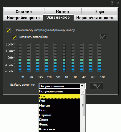 Остальные настройки, изменяемые для каждого канала индивидуально, вызываются при помощи специальной кнопки на панели интерфейса либо посредством контекстного меню.
