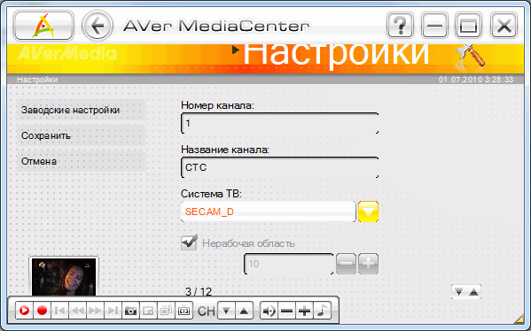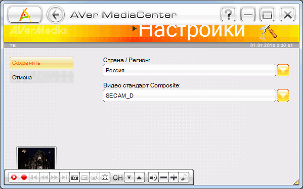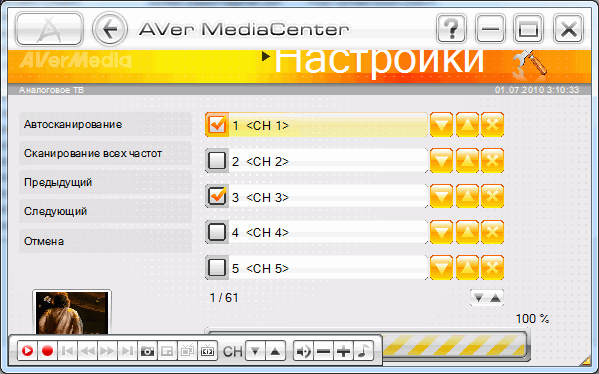 На подробном описании работы программы в режиме проигрывателя останавливаться не будем, ограничимся непосредственно работой тюнера. Тем более, в отличие от большинства ориентированных на обычного пользователя мультимедийных оболочек, AVer MediaCenter имеет более продвинутые настройки.