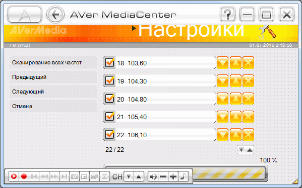 Алгоритм настройки перенесён из AVerTV 6 с поправкой на разницу в общей эргономике программ. Приём телевизионных каналов и FM-радиостанций настраивается отдельно.