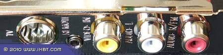 Коммутация отличается некоторой оригинальностью. Обычно в низкопрофильных тюнерах для подключения внешних источников используются переходники-разветвители, но в AVerTV Super 009 можно увидеть полный комплект стандартных композитных разъёмов (RCA видео и 2 RCA аудио), который удалось разместить, используя аудиовход правого канала для подключения FM-антенны. Жертвой такого подхода пал S-Video разъём, но справедливости ради следует отметить низкую вероятность использования его для видеозахвата с бытовых VHS камер/видеомагнитофонов, так что, в этой части урезание функционала вреда практически не нанесло.