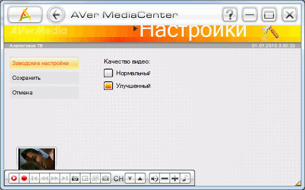 Возможности тюнера при использовании AVer MediaCenter соответствуют малому джентльменскому набору, принятому в приличных домах, их представляют: