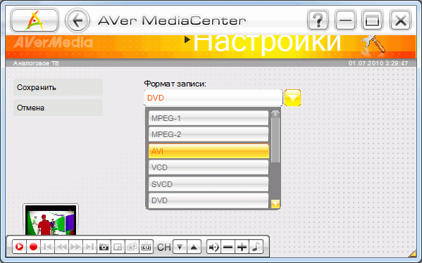 Полноценно поддерживается несколько TV-тюнеров производства AVerMedia, формат сигнала при этом не имеет значения.