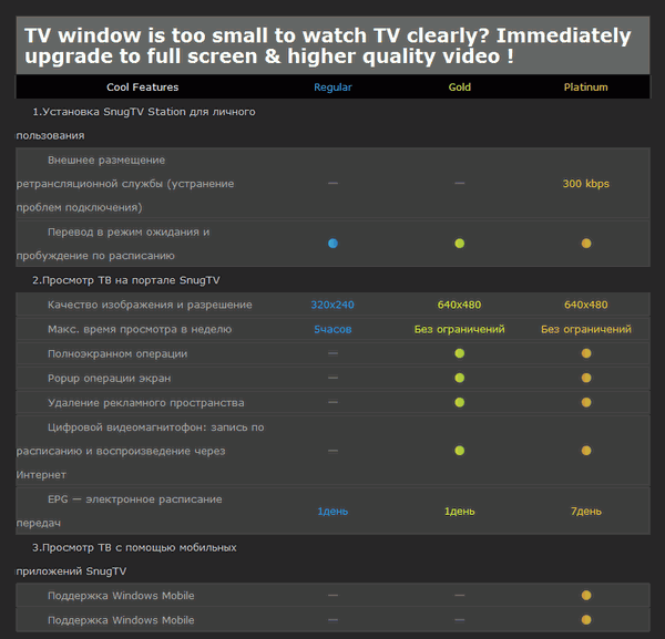 - ограничения в SnugTV без дополнительной оплаты.