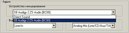 Реализован и вывод звука по шине PCI. Для этого в разделе Устройство микширования необходимо выбрать опцию Direct Sound.