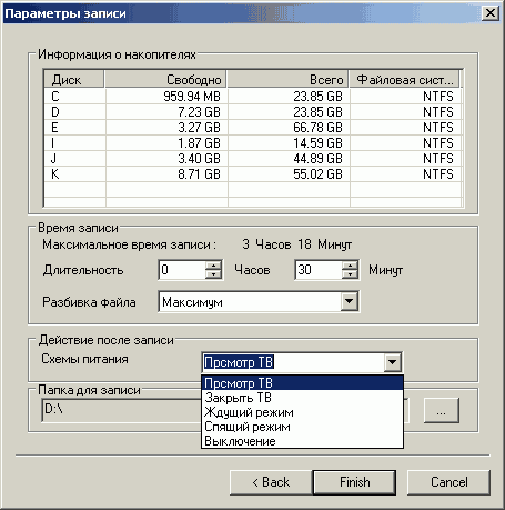 Неудивительно, что одна из надписей на коробке относится к работе планировщика. Как говорится, лучше поздно, чем никогда. В данном случае это относится к возможности отключения компьютера, либо перехода в ждущий/спящий режим после окончания записи.