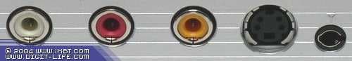 На противоположной стороне расположен стандартный комплект аудио- и видеоразъемов и mini-jack для подключения антенны. Соответствующий переходник mini-jack — антенный IEC-разъем в комплект входит. При подключении, например, к ноутбукам, имеющим только микрофонный вход, желательно использовать прилагающийся делитель напряжения, во избежание проблем с уровнем звука.