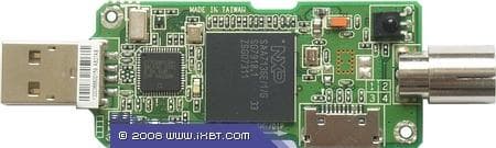 Знакомый нам по PCMCIA и Express Card тюнерам компании переходник-разветвитель, подключаемый к разъёму на боковой панели, имеет полный комплект стандартных видео-и аудиоконнекторов (S-Video + RCA видео + 2 RCA аудио).