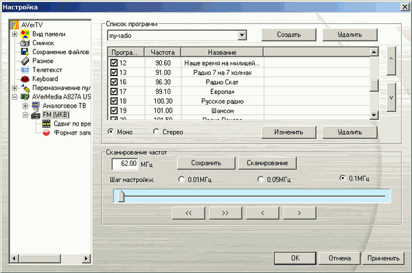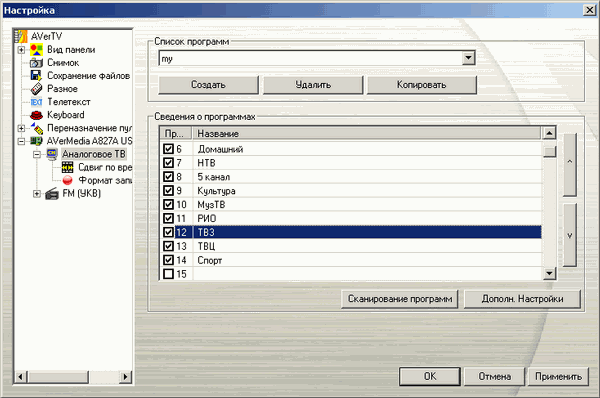 Несмотря на возможность DVB-T передавать на одной частоте как телевизионные каналы, так и радиостанции, подход AVerMedia предусматривает раздельное отображение теле- и радиоканалов как для аналогового, так и для цифрового режимов. При выборе России в качестве региона автопоиск работает корректно. Можно сохранить несколько пользовательских списков каналов.