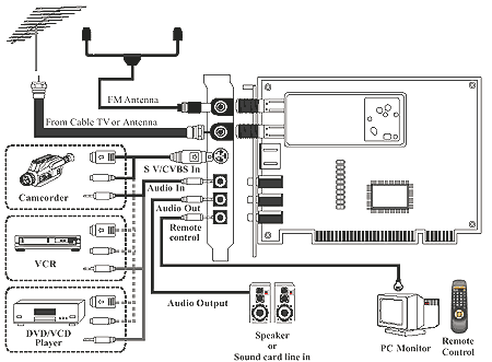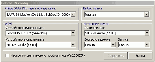 - Оцифровка звука с использованием внутреннего АЦП чипсета Philips SAA7134
