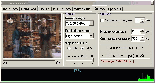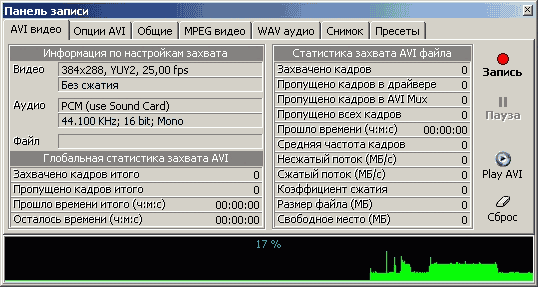 - Запись видео в формате AVI с использованием установленных в системе кодеков