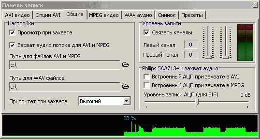 Во избежание проблем с рассинхронизацией видео и звука, возможно использование встроенного АЦП (только для SAA7134) при захвате. Напомним, что встроенный АЦП поддерживает только частоту дискретизации 32 кГц.