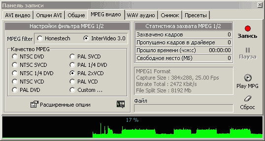 Для записи в MPEG1/2 необходимо установить соответствующие кодеки, в комплект поставки они не входят.