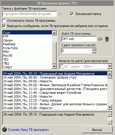 Поддерживается ТВ-программа в формате JTV (скачивается отдельно).