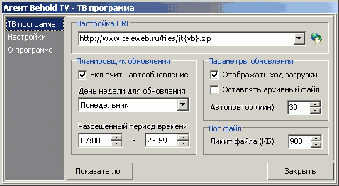 Резидентное приложение также служит для обновления базы телевизионных программ.