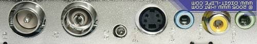 На планке находится стандартный комплект разъёмов (антенные, разъём для подключения ИК-датчика, S-Video, линейный аудиовход, композитный разъём, линейный аудиовыход).