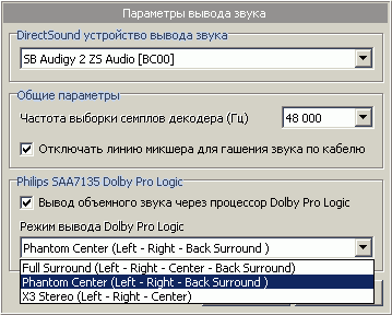 В звуковых настройках появилась возможность использования процессора Dolby Pro Logic, встроенного в Philips SAA7135HL. Данная возможность доступна только при наличии звуковой карты, поддерживающей многоканальный вывод и только при активированном режиме 5.1 (6.1, 7.1).