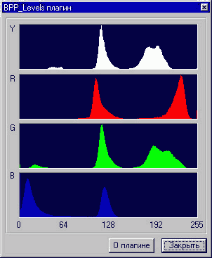Среди новинок в списке плагинов отметим, пожалуй, BPP_Levels, позволяющий отображать нормированные диаграммы распределения уровней Y, R, G и B компонент видеоизображения. Плагин работает в формате YUY2 и RGB24 и даёт возможность объективно оценить и отрегулировать в режиме просмотра или до записи такие параметры изображения, как яркость, уровень чёрного, уровень белого и контрастность.
