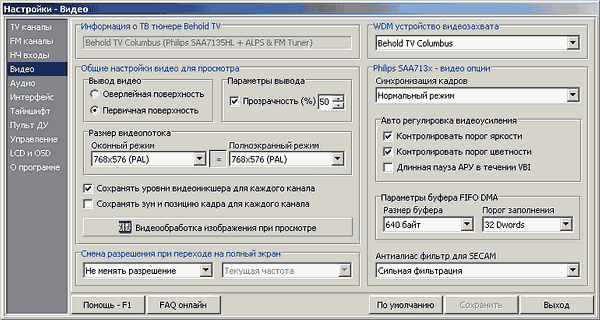 В последних версиях Behold TV появилась отдельная настройка параметров для видеовходов.