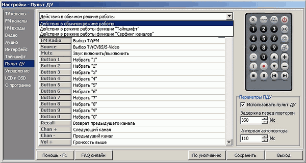- Настраиваемый пульт ДУ (для работы с программой Behold TV)