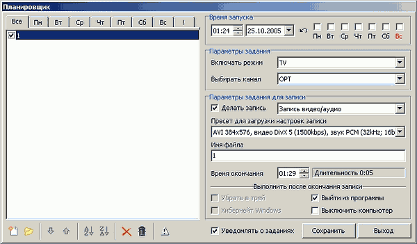 - Возможность отключения компьютера/перевода в спящий режим после окончания записи