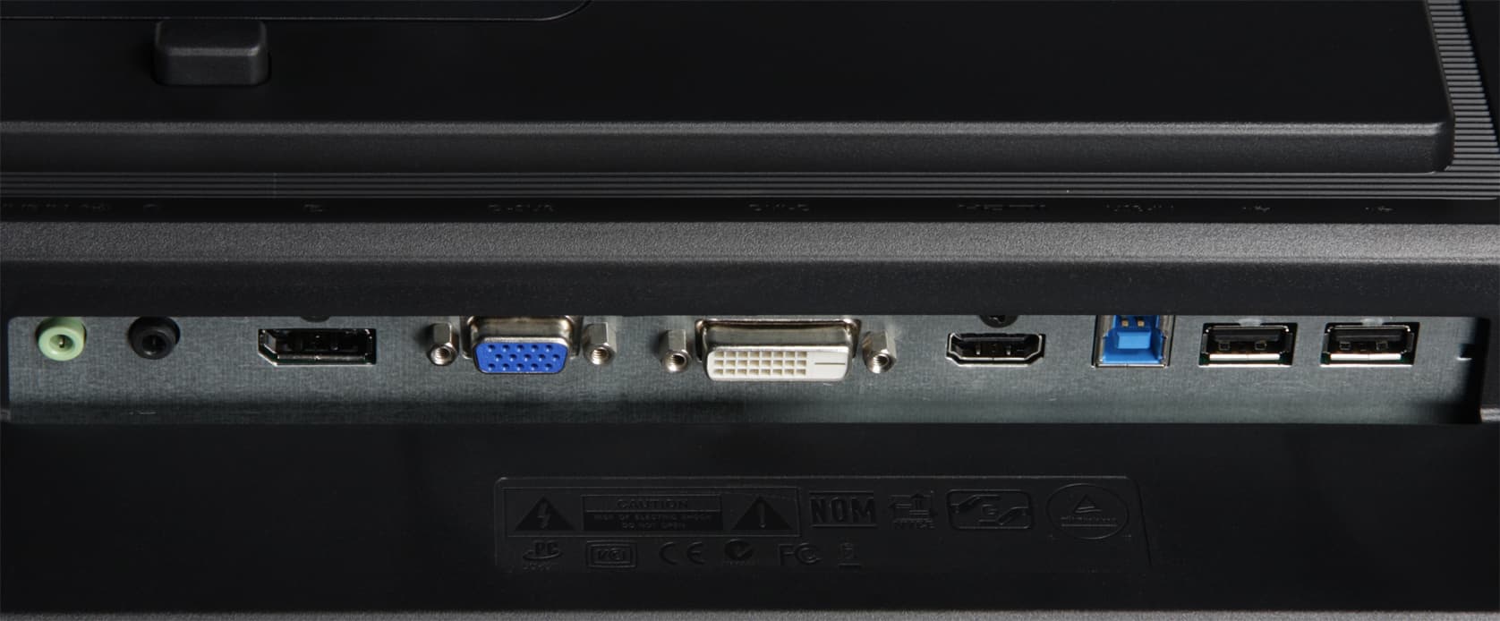 Монитор оснащен тремя цифровыми входами — DVI-D, HDMI и DisplayPort, а также аналоговым VGA-входом. Вход DVI-D и, видимо, DisplayPort поддерживают HDCP. Коммуникацию DDC/CI можно отключить. Нужный вход выбирается в меню (в быстром или в основном). Также есть автоматический поиск активного входа, при этом DisplayPort и HDMI можно исключить из перебора. Если на текущем входе пропадает сигнал и монитор не находит его на других входах, то он переходит в спящий режим, из которого выходит, при появлении сигнала или переходит в выключенное состояние через 10/20/30 мин, если активирована соответствующая функция. В монитор встроен USB(3.0)-концентратор с одним входом и двумя выходами такой же версии и еще двумя — версии 2.0.