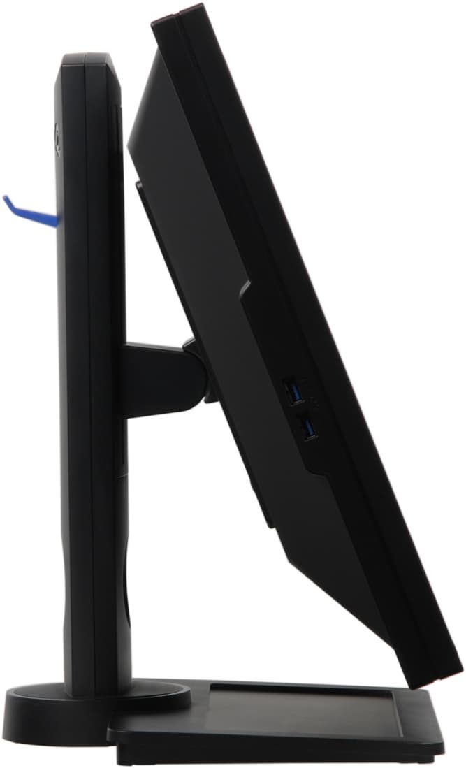 Подключать кабели к разъемам относительно удобно, но для большего удобства экран лучше перевернуть в вертикальную ориентацию. Два из четырех USB-портов концентратора вынесены на левый торец блока экрана и именно эти два порта являются портами версии 3.0, то есть к дальним портам 2.0 на задней панели логично подключать устройства ввода, не требующие высокой скорости, например мышь и клавиатуру, а к доступным скоростным — внешние накопители.