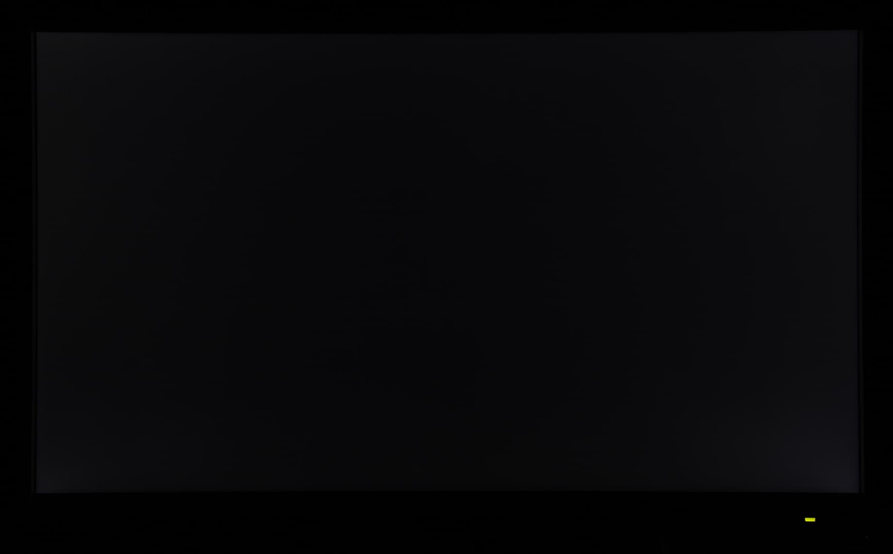 Аппаратные измерения показали отличную равномерность белого поля. Формально равномерность черного поля и соответственно контрастности не очень высокая, но абсолютное значение контрастности высокое, что отчасти нивелирует этот недостаток. Визуально черное поле равномерное на большей части площади, и только в нижних углах яркость несколько повышается. Фотография ниже демонстрирует распределение зон с повышенной яркостью черного поля: