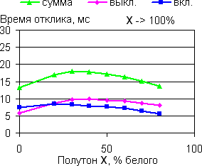 | Времена отклика при переходе от черного до полутона X. | Времена отклика при переходе от полутона X до белого. |