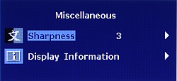 Если на экране нет меню, то три кнопки на передней панели — Exit (основное назначение — выход из меню или возврат на предыдущий уровень) и курсорные влево-вправо (изменение текущего параметра или перемещение по пунктам) — служат для быстрого доступа к регулировкам громкости динамиков, контрастности и яркости, соответственно. Крайняя левая кнопка с непонятным значком над ней вызывает функцию автоподстройки; крайняя правая служит для активизации экранного меню или для перехода на следующий уровень. Цветовой баланс настраивается или выбором одного из трех предустановленных профилей (названных как Bluish, Reddish и sRGB), или ручной настройкой яркостей красного, зеленого и синего цветов.