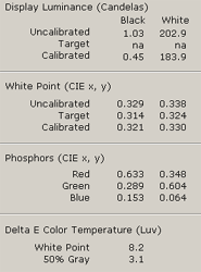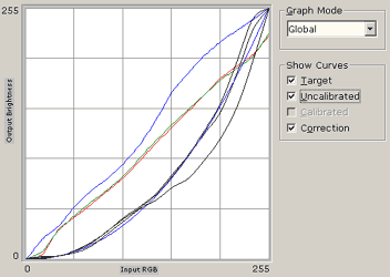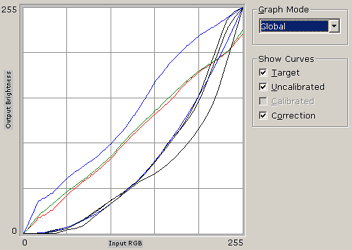 Пакет Pantone OptiCal производит сильную калибровку монитора, однако наши замечания про завал цветовых каналов получают подтверждение: просто просмотрите на графики коррекции.